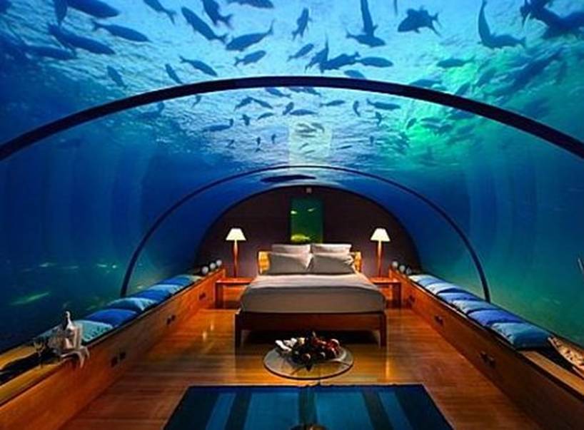 Этот отель уже позволяет совместить красоту обычного отдыха на Мальдивах с наблюдением за существованием подводной фауны. Хотя в воде расположен только ресторан, а не номера, сделанные стеклянными стенки и даже потолок оставляют интереснейшее впечатление, а водных обитателей около тропического острова столько, что можно часами не отрывать взгляда от этого буйства жизни.